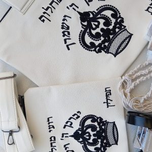 נרתיקי תפילין דגם "קוניאק זהב"עור דמוי יוקרה בצבע קוניאק עמוק, רקמת שם מוזהבת, טקסטורה יפה ונקיה, ורוכסנים איכותיים.
