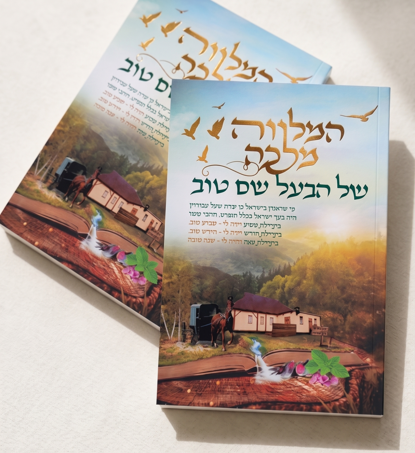 עיצוב שובה עין: כריכה אמנותית המשלבת מוטיבים של טבע, כרכרה ועיירה יהודית, המכניסים את הקורא לאווירה הקסומה של דורות קודמים.