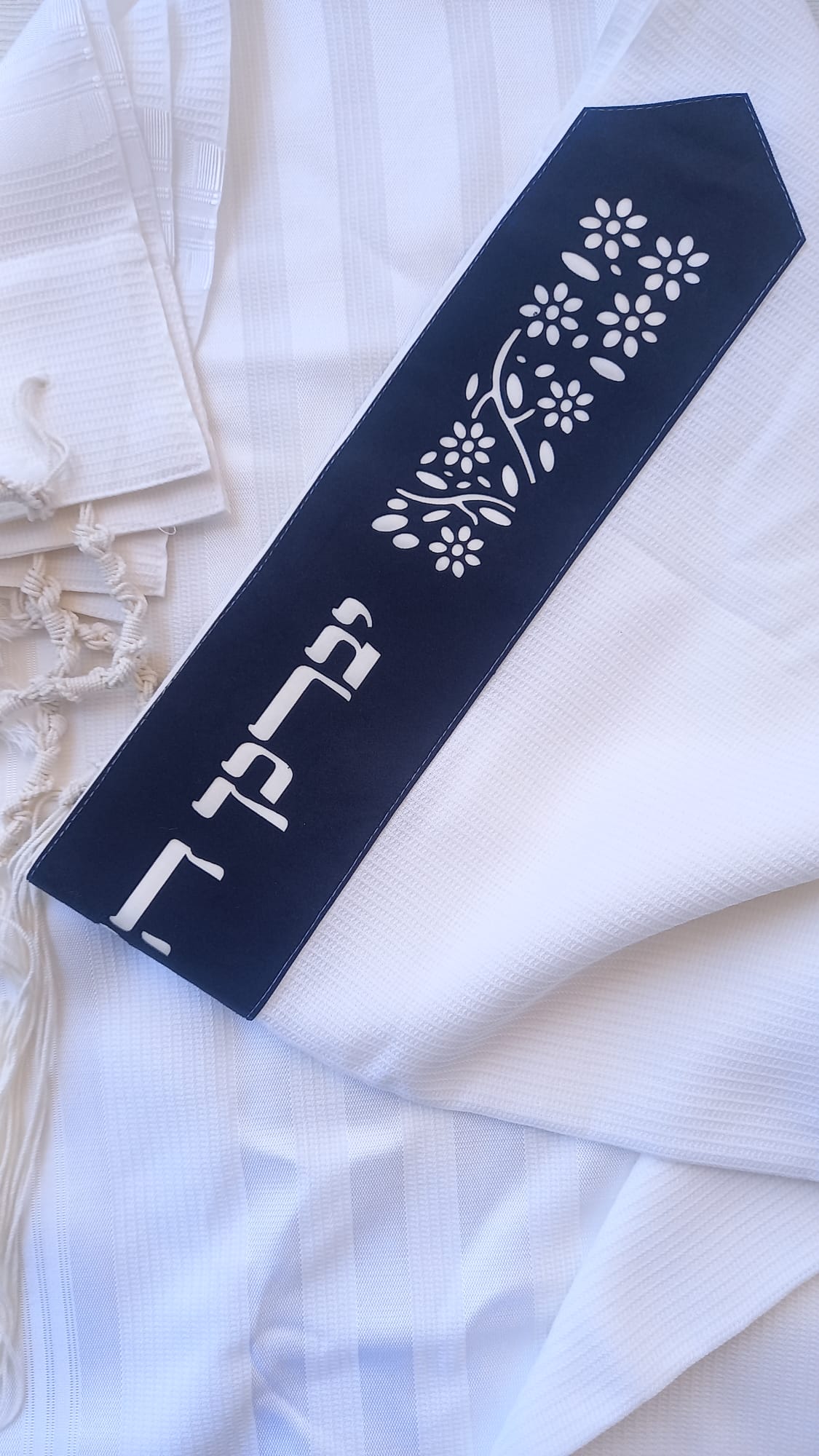 • עטרת חיתוך לייזר אומנותית: העטרה מעוצבת בטכנולוגיית חיתוך לייזר מדויקת על גבי רקע כחול עמוק. העיצוב כולל מוטיבים של צמיחה ופריחה יחד עם הכיתוב “יברכך” מברכת הכוהנים, המעניק עוצמה רוחנית לכל עטיפה.