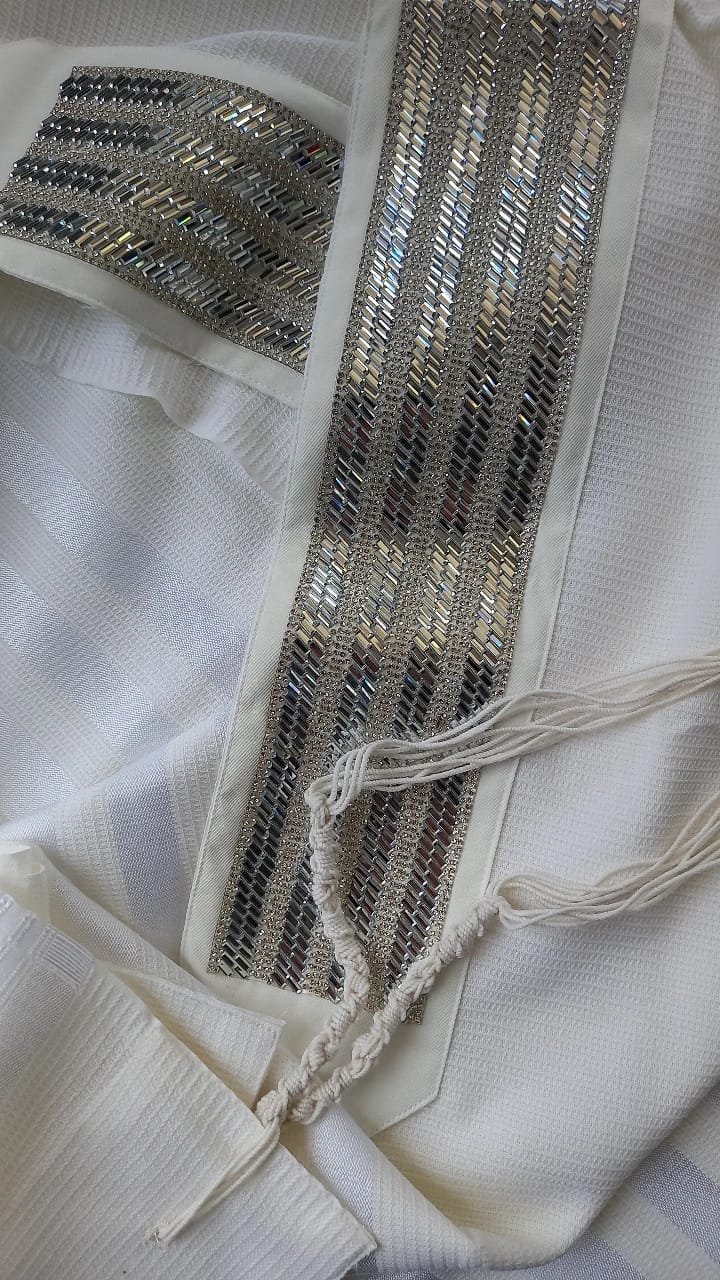 עטרה משובצת אבני סברובסקי: עיטור יוקרתי ומנצנץ המעניק לטלית מראה מלכותי ומרשים.