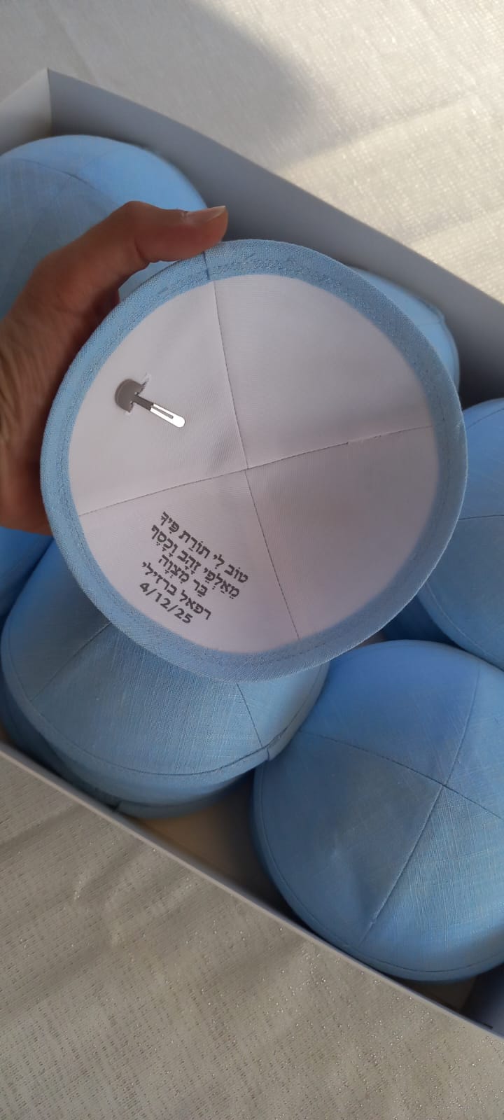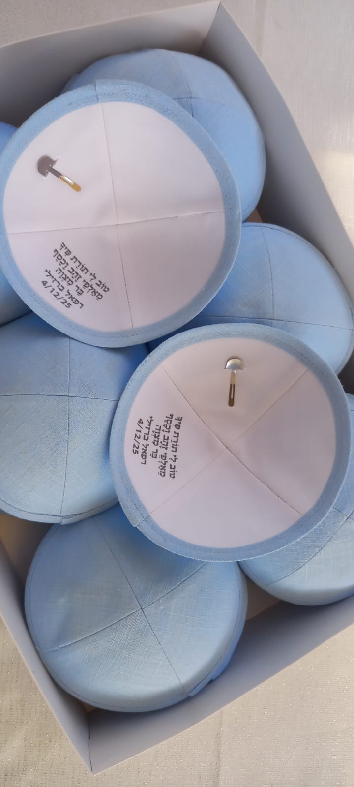 מחפשים את המזכרת המושלמת לאורחים שלכם? כיפות הפשתן שלנו משלבות מראה קלאסי, בד איכותי ונוחות מקסימלית. הכיפה שמעניקה לאירוע שלכם טאץ’ אלגנטי ואישי.