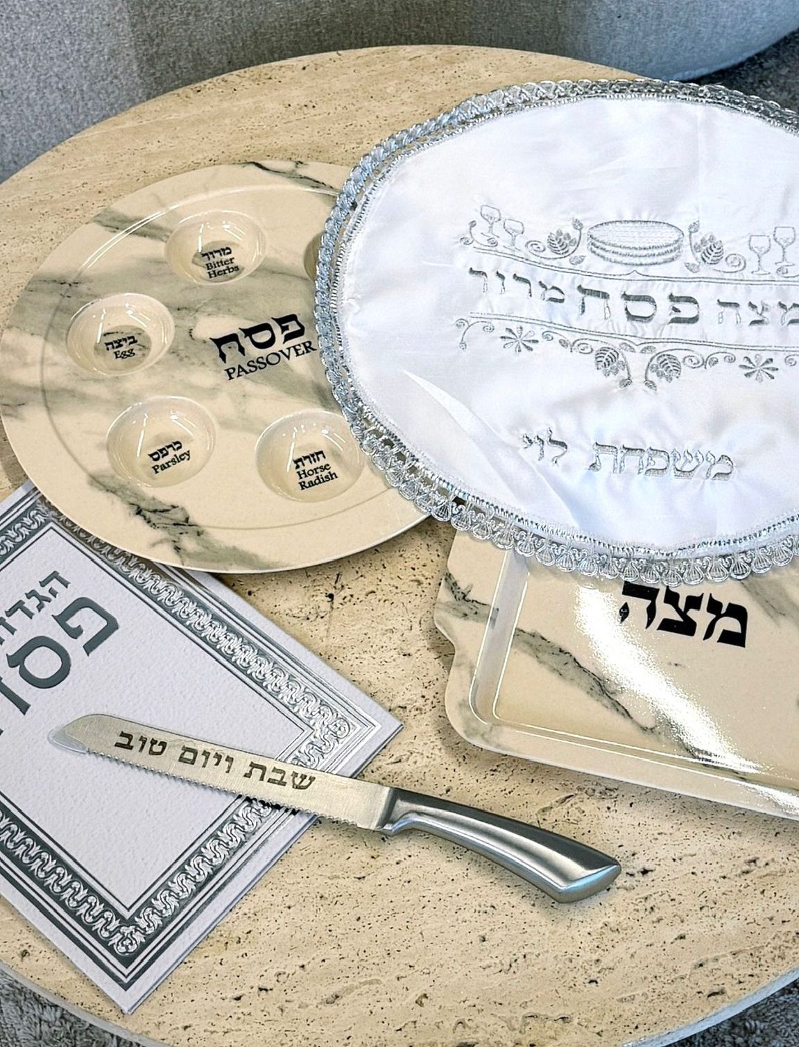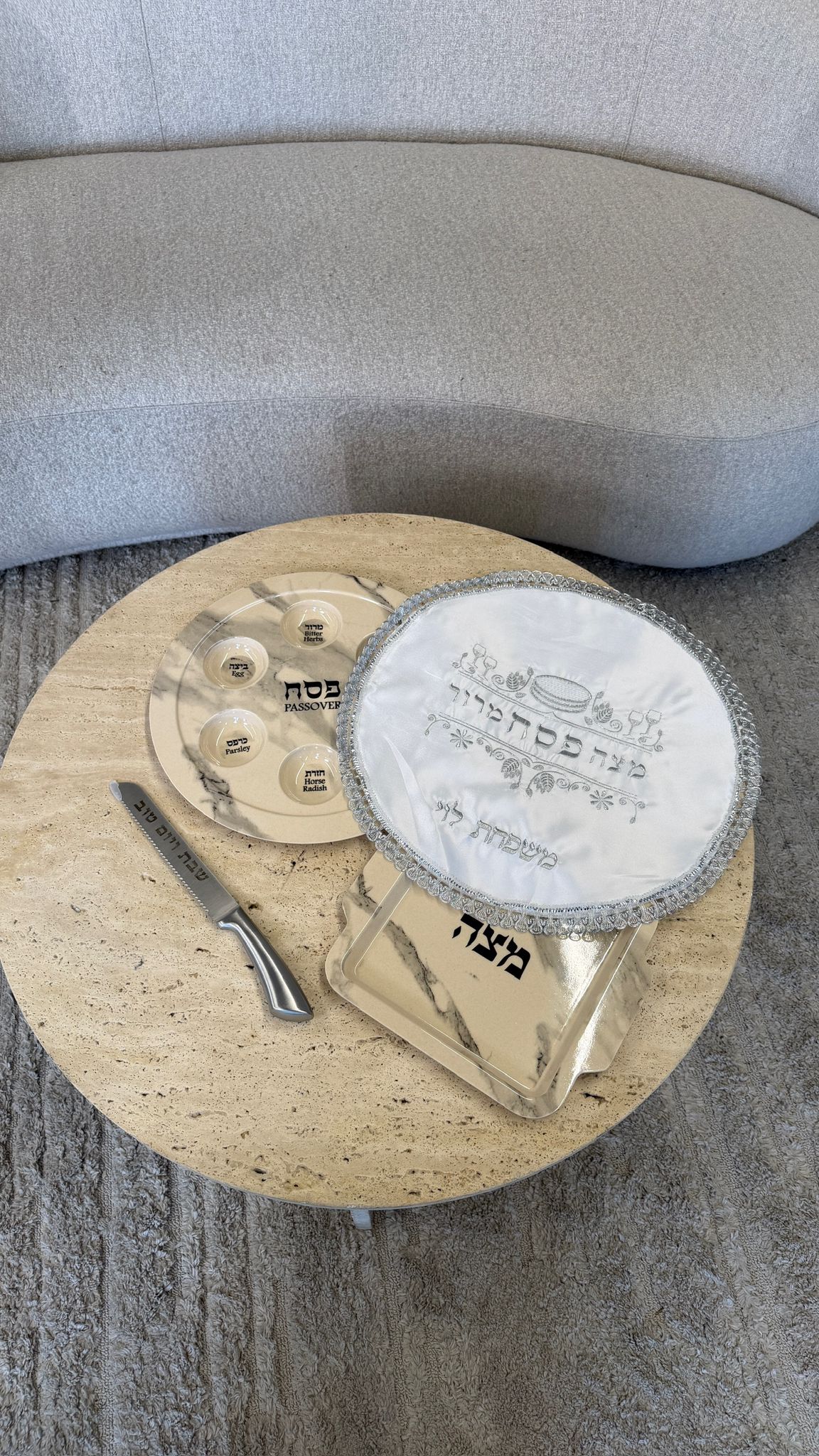 🧺 מגש מצות תואם: מעוצב בקו נקי המשלים את קערת הסדר למראה הרמוני.