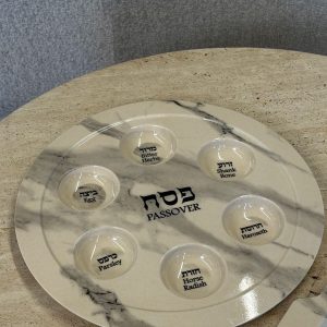 🪨 קערת סדר במבוק יוקרתית: בגימור טקסטורת שיש עם כיתוב דו-לשוני (עברית ואנגלית).
