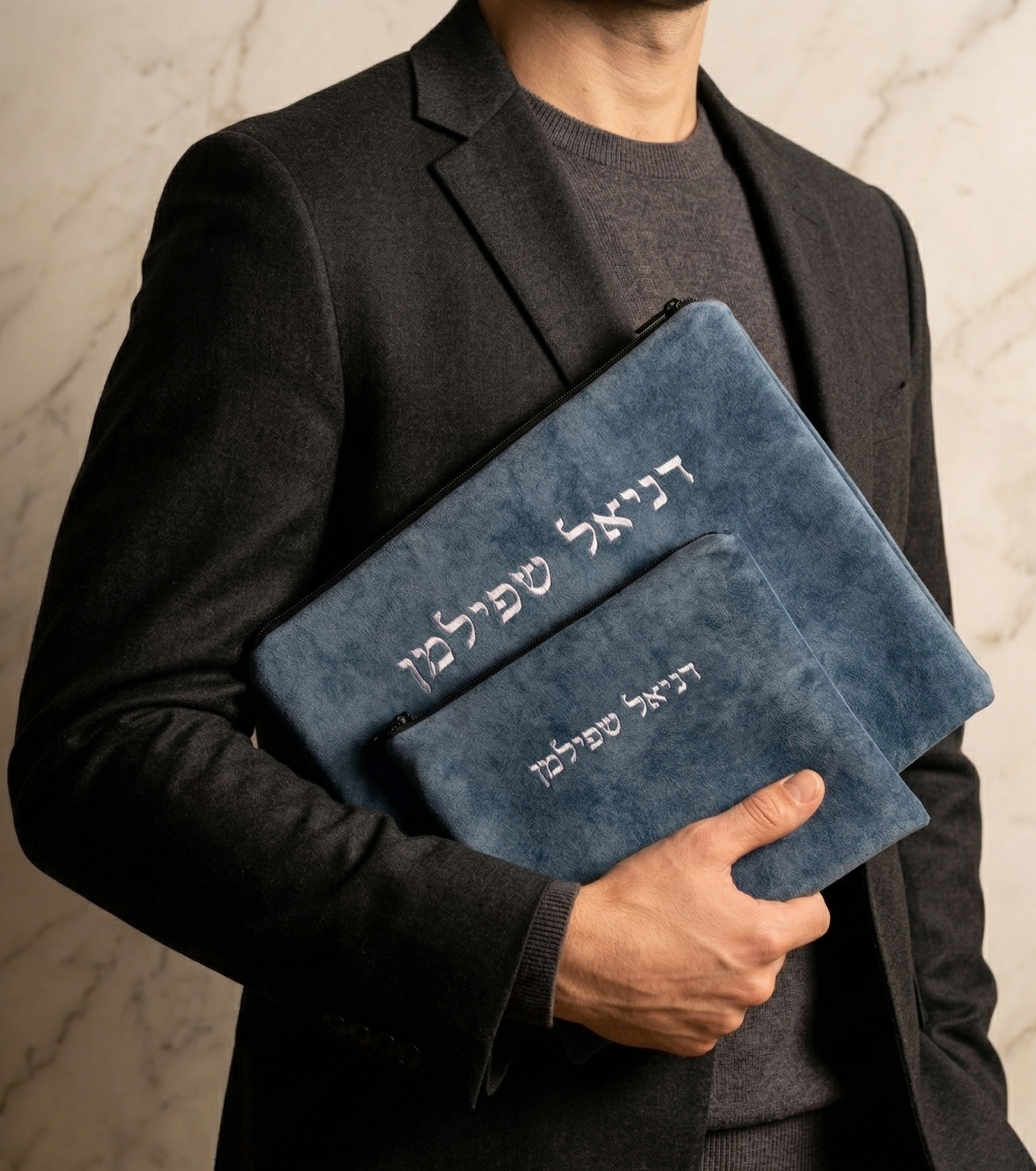 העניקו ליום שלכם התחלה קדושה ואלגנטית עם סט כיסויים בעיצוב אישי, המשלב מסורת עתיקה עם איכות מודרנית בלתי מתפשרת.