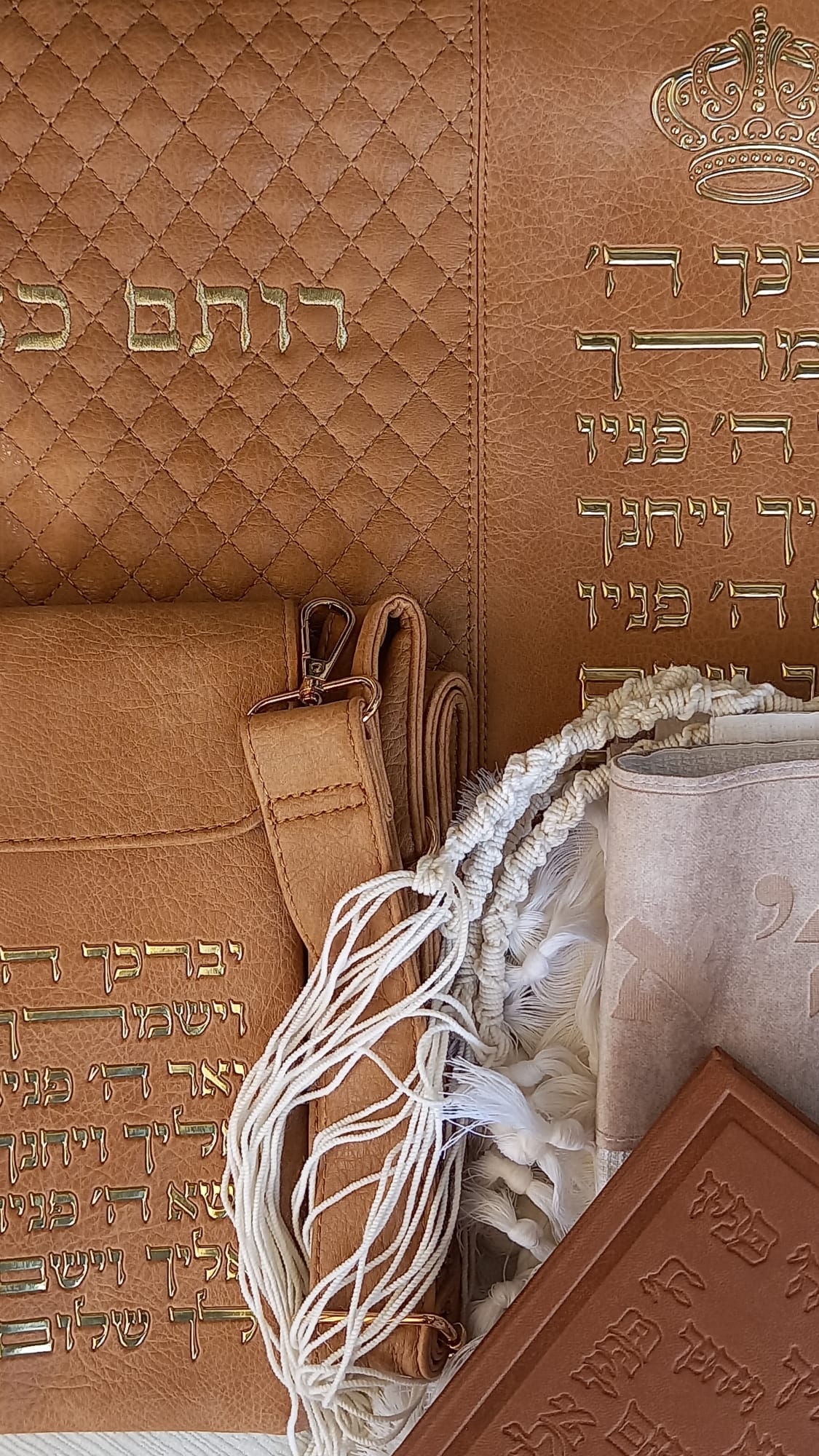 טלית 100% צמר דגם “תשבץ”: טלית יוקרתית עשויה צמר נקי, בעלת מרקם תשבץ ייחודי המונע החלקה מהכתפיים לאורך כל התפילה.