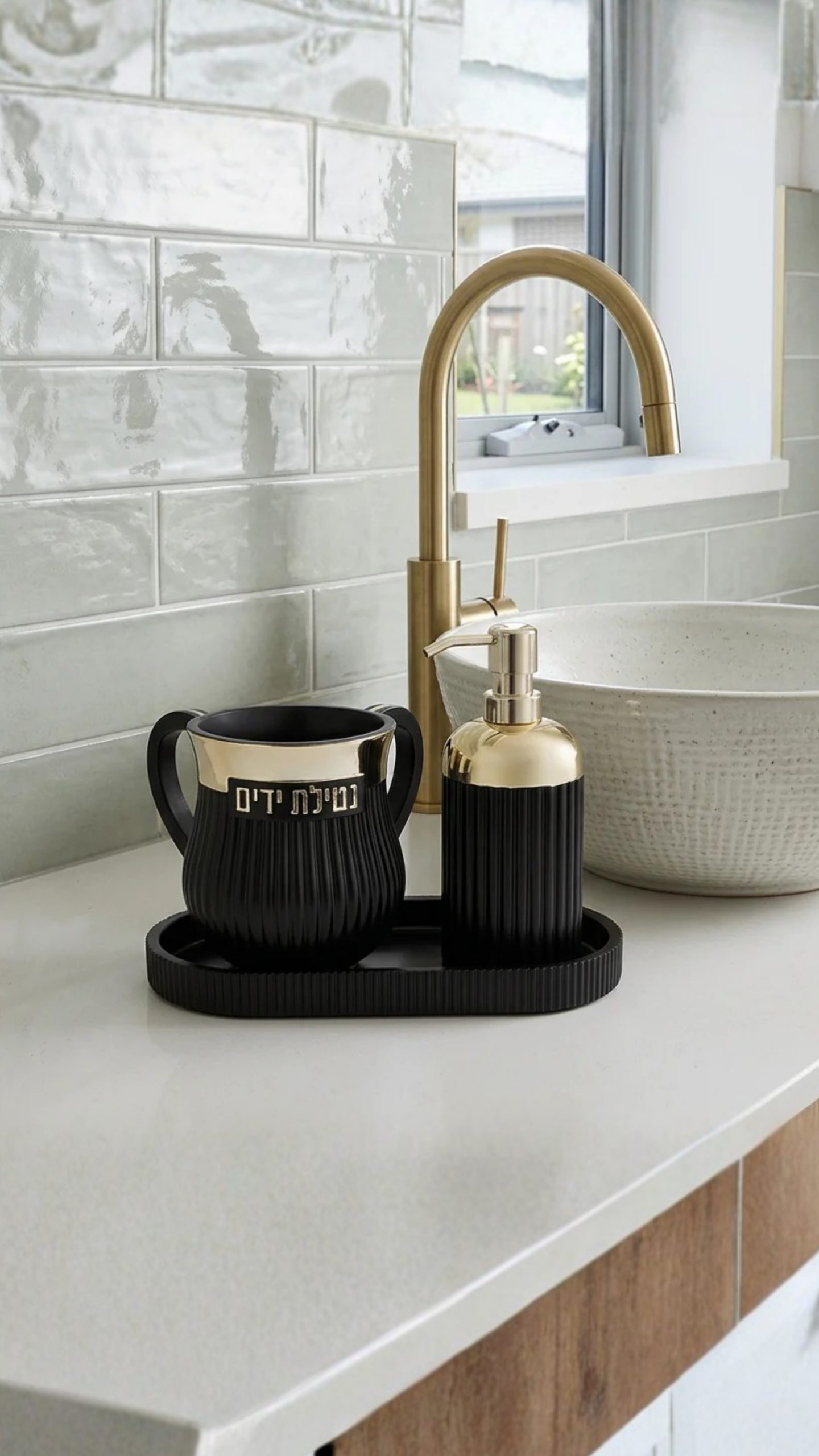 סט נטילת ידיים דגם “Black & Gold Lux” – שלושה חלקים