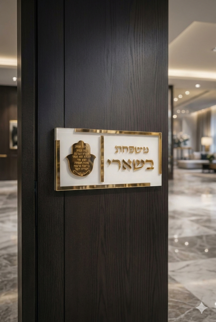 • דיוק בפרטים: שילוב אותיות ואלמנטים בזהב מבריק (מראה) בולט, כולל סמל חמסה מסורתי עם “ברכת הבית” חרוטה.