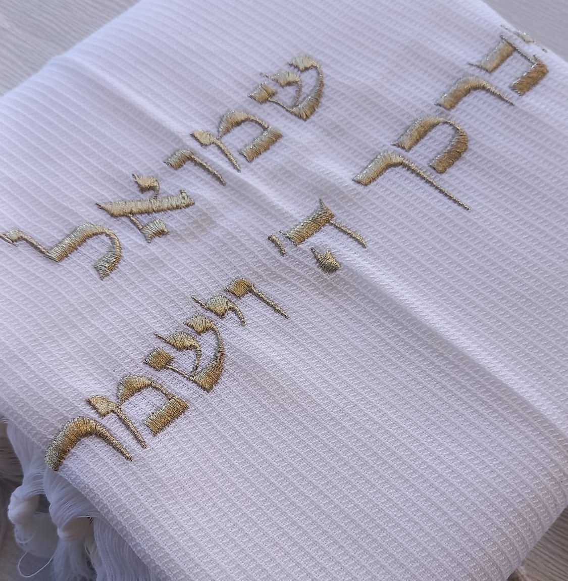 הערה: ניתן להזמין את הטלית עם רקמת שם אישית לבחירתכם (במקום השם “שמואל”) כדי להפוך את הטלית לפריט אישי ומרגש עוד יותר.