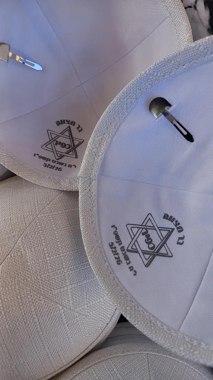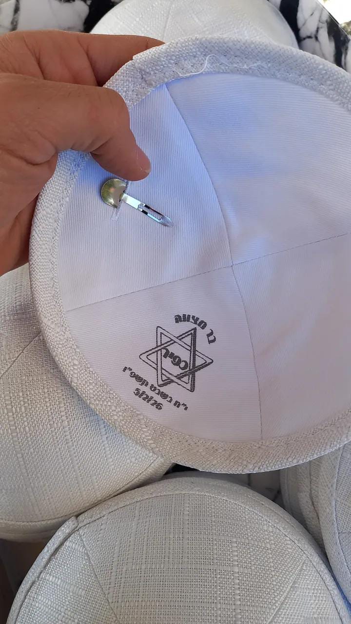 רקמה חיצונית בהתאמה אישית: שדרוג יוקרתי המאפשר לרקום שמות או כיתובים ישירות על גבי הטקסטורה הגסה של הכיפה (לדוגמה: “אדיר”, “בן”, “סהר”).