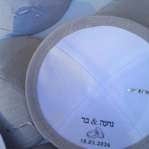 • רקמה חיצונית בולטת: ניתן לרקום שמות אישיים של האורחים או החוגגים על גבי הכיפה (כמו “אדיר”, “סהר” או “לי”) למראה יוקרתי ואישי.